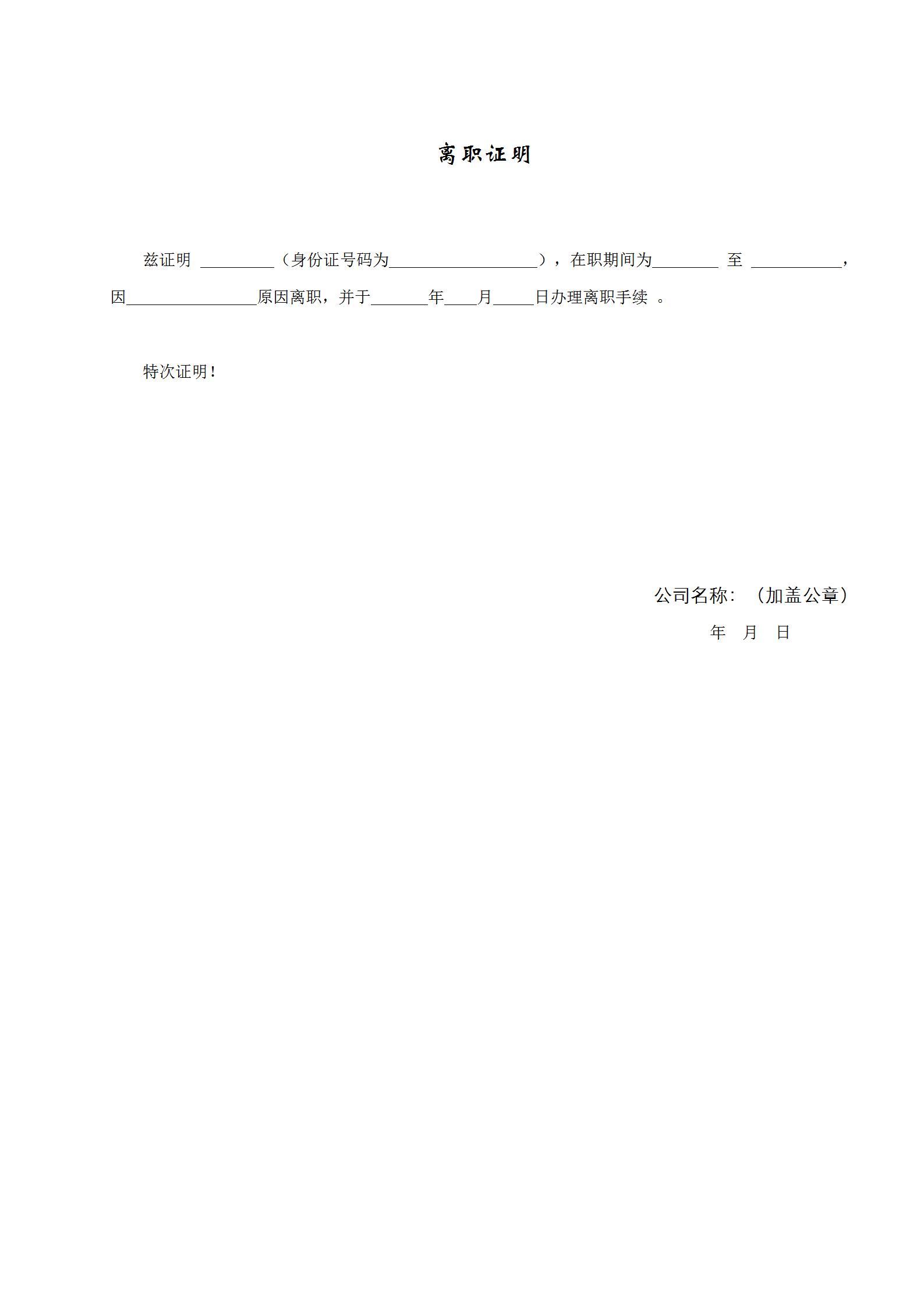 先生,身份证号: 自20 年 月 日入职我公司担任 职务,至 20 年 月 日,由于个人原因申请离职,在此期间工作良好,无不良表现,经过公司研究决定准予其离职,现已办理完交接手续。